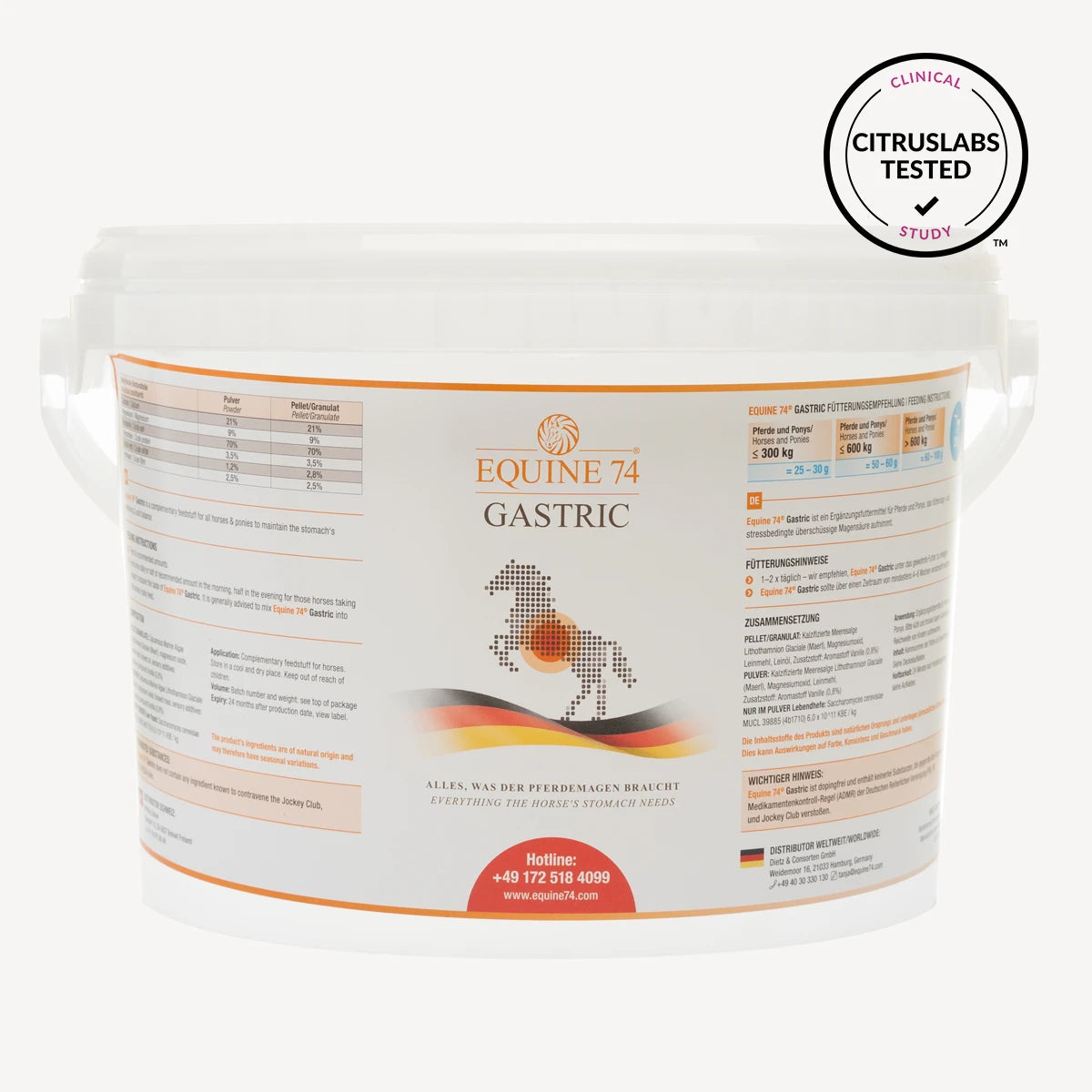 Transportsituationen, Turniere, Training auf neuen Plätzen und dergleichen können den Magen deines Pferdes stark belasten. Equine 74 Stomach Calm Relax kann dein Pferd unterstützen, mit diesem Stress fertig zu werden.